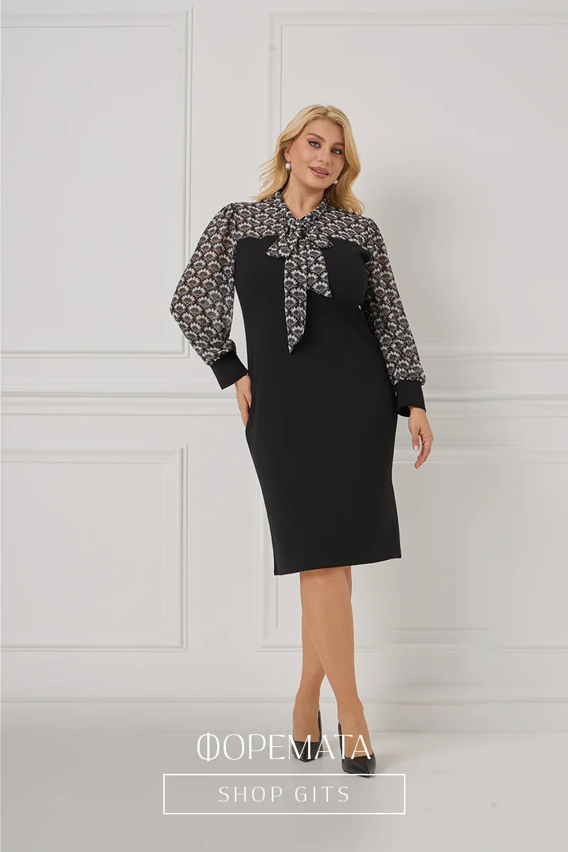 Κομψό φόρεμα σε μεγάλα μεγέθη, σχεδιασμένο για να προσφέρει άνεση και θηλυκότητα σε κάθε περίσταση. Το κάτω μέρος του φορέματος είναι κατασκευασμένο α..