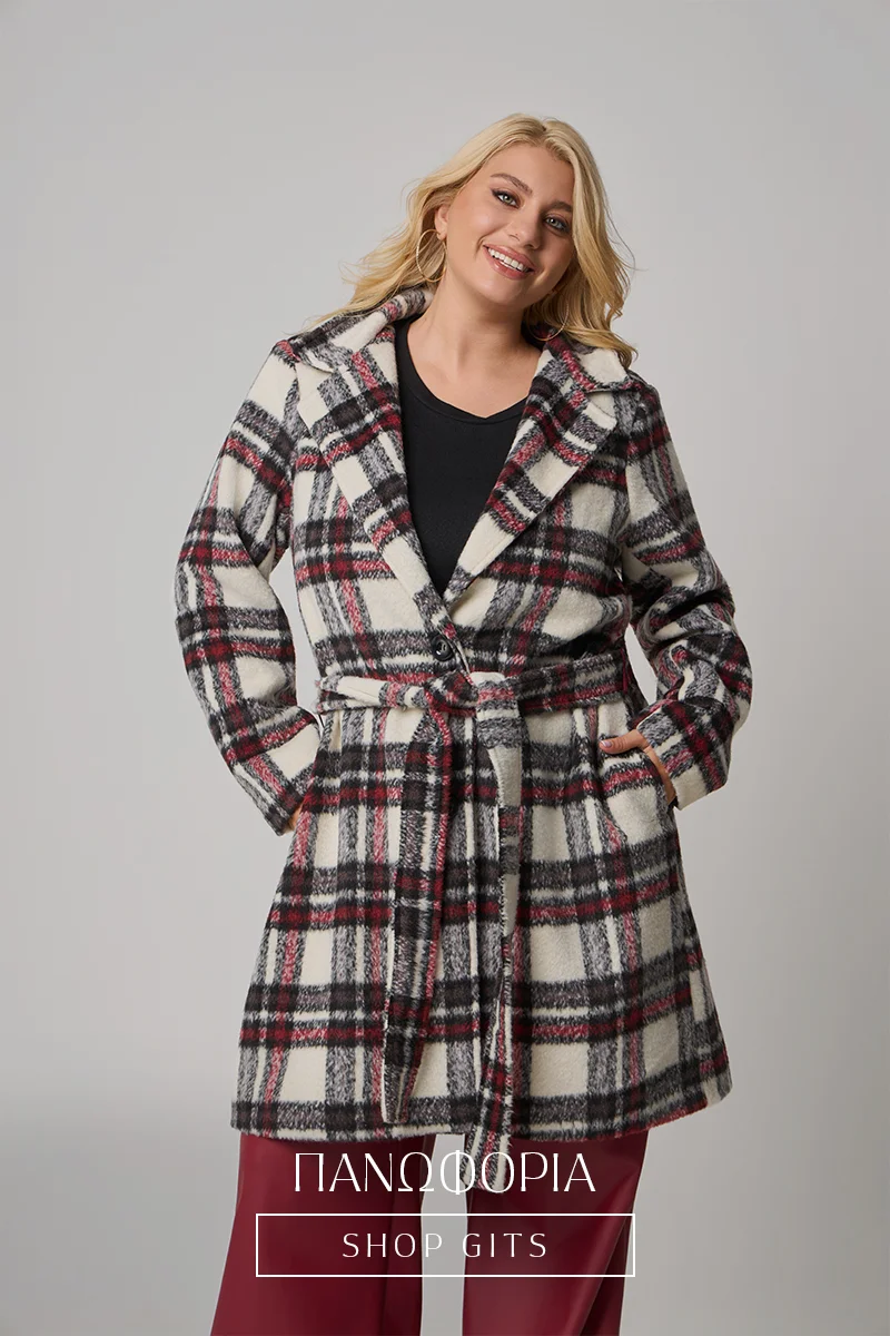 Ανακάλυψε το απόλυτο κομψό και ζεστό look του χειμώνα με αυτό το γυναικείο καρό παλτό σε μεγάλα μεγέθη. Διαθέτει πρακτική ζώνη που τονίζει τη μέση και..