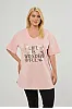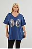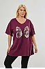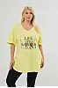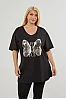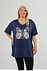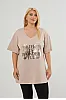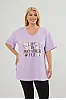 T-Shirt με στάμπα και άνοιγμα στα πλαϊνά. Διαθέτει V λαιμόκοψη και κοντά μανίκια με ρεβέρ.