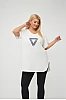 T-Shirt με στάμπα και άνοιγμα στα πλαϊνά. Διαθέτει V λαιμόκοψη και κοντά μανίκια με ρεβέρ.
