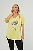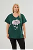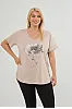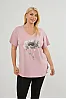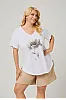 Βαμβακερό t-Shirt με τύπωμα και στράς . Διαθέτει άνοιγμα στα πλαϊνά και κοντά μανίκια. ΜεV λαιμόκοψη
