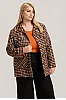 Plus size jacket με διαχρονικό καρό μοτίβο σε αποχρώσεις πορτοκαλί, μαύρου και εκρού, σχεδιασμένο για άνεση και στυλ. Κατασκευασμένο από μαλακό και ζεστό ύφασμα, αποτελεί ιδανική επιλογή για τις πιο δροσερές ημέρες.