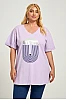 T-Shirt με στάμπα και άνοιγμα στα πλαϊνά. Διαθέτει V λαιμόκοψη και κοντά μανίκια με ρεβέρ.