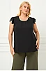 Δροσερή πλούζα αμάνικη απο σταθερό φυσικό ύφασμα βισκόζη . Διαθέτει στρογγυλή λαιμόκοψη και βολάν στους ώμους.