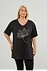 T-Shirt με στάμπα λουλούδι και άνοιγμα στα πλαϊνά.  Διαθέτει V λαιμόκοψη και κοντά μανίκια με ρεβέρ.